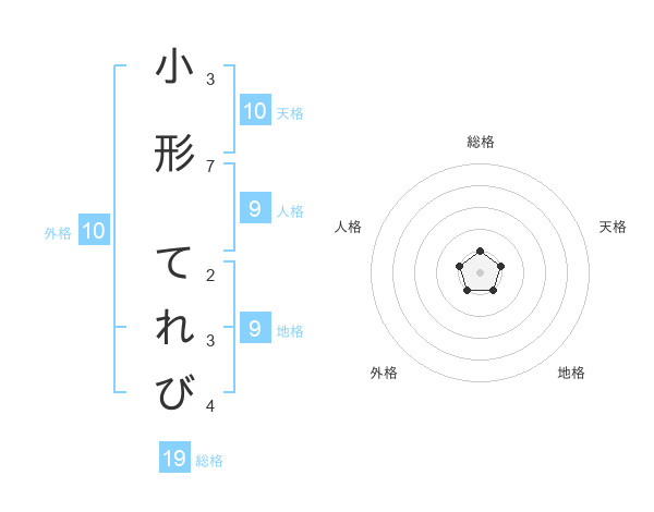小形 てれびさんの総格は19画の1点!