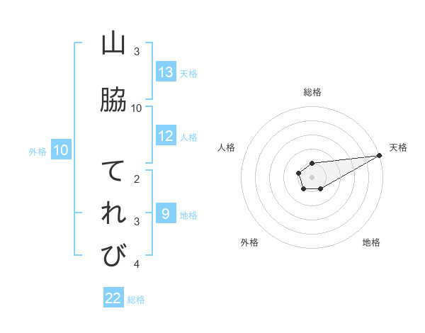 山脇 てれびさんの天格は13画の5点