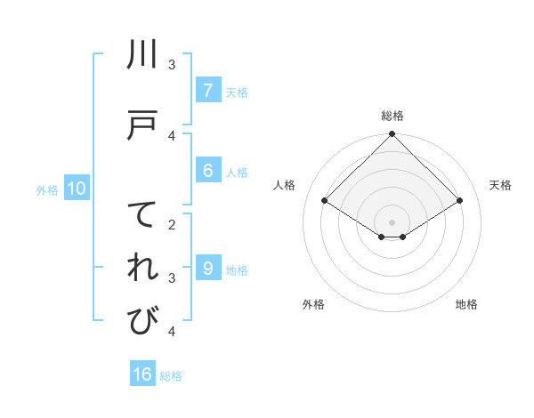 川戸 てれびさんの総格は16画の5点!
