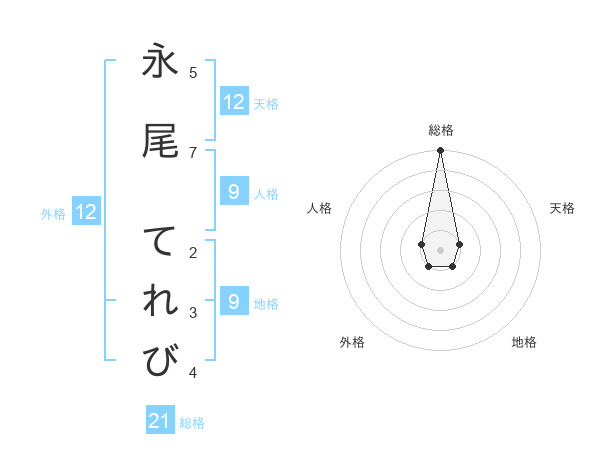 永尾 てれびさんを姓名の画数から五運を鑑定