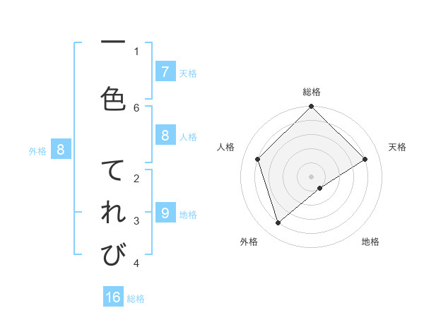 一色 てれびさんの総格は16画の5点!