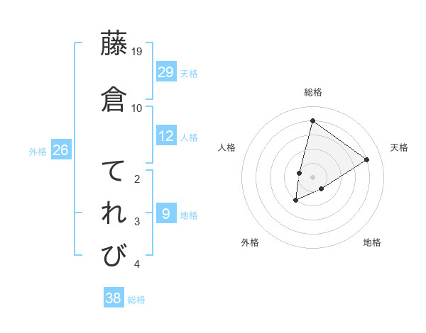 藤倉 てれびさんを姓名の画数から五運を鑑定