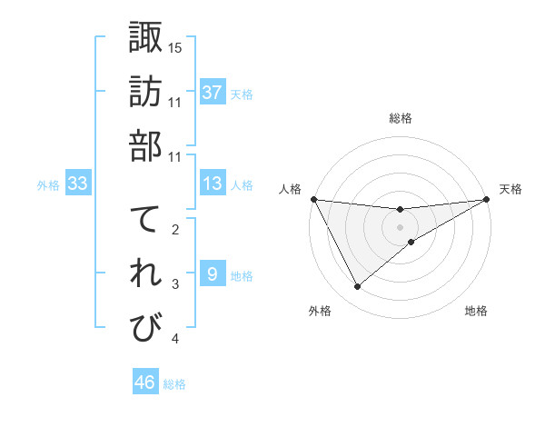諏訪部 てれびさんを姓名の画数から五運を鑑定