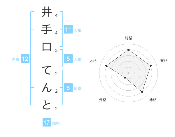 井手口 てんとさんを姓名の画数から五運を鑑定