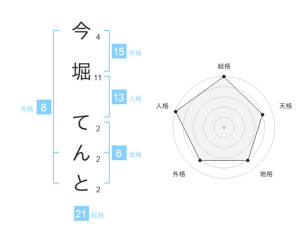 今堀 てんとさんを姓名の画数から五運を鑑定