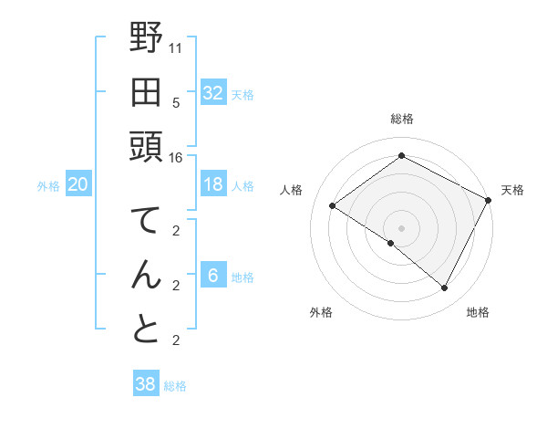 野田頭 てんとさんを姓名の画数から五運を鑑定