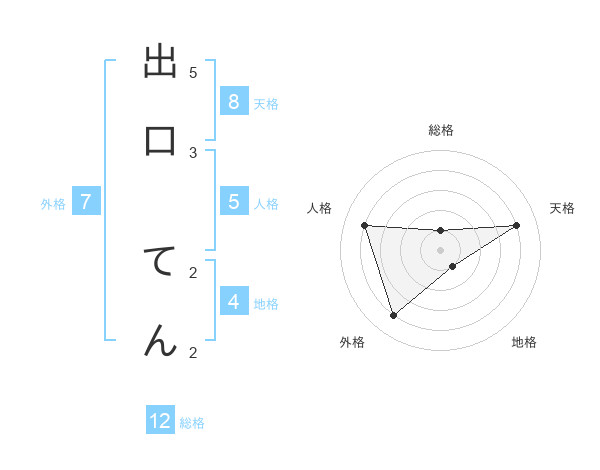 出口 てんさんの総格は12画の1点!