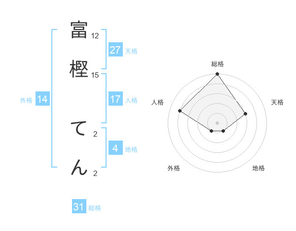 富樫 てんさんの総格は31画の5点!