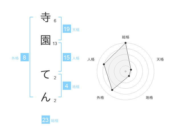 寺園 てんさんの総格は23画の5点!