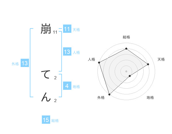 崩 てんさんの総格は15画の4点!