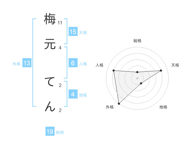梅元 てんさんの天格は15画の4点!