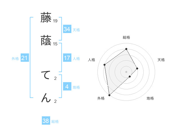 藤蔭 てんさんの総格は38画の4点!