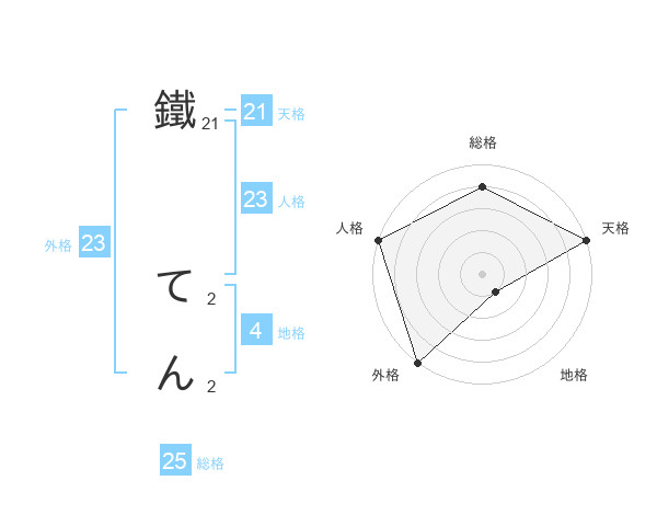 鐵 てんさんの天格は21画の5点!