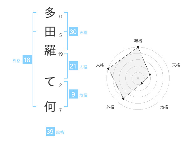 多田羅 て何さんを姓名の画数から五運を鑑定