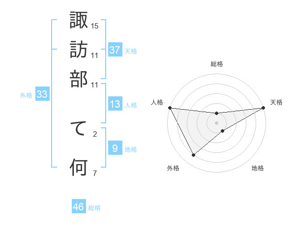 諏訪部 て何さんの天格は37画の5点!