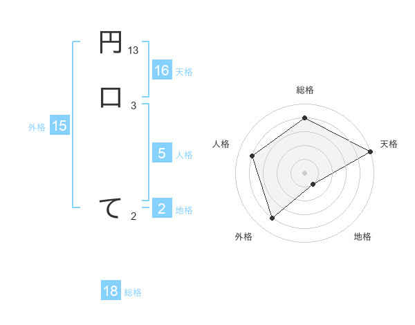 円口 てさんの天格は16画の5点!