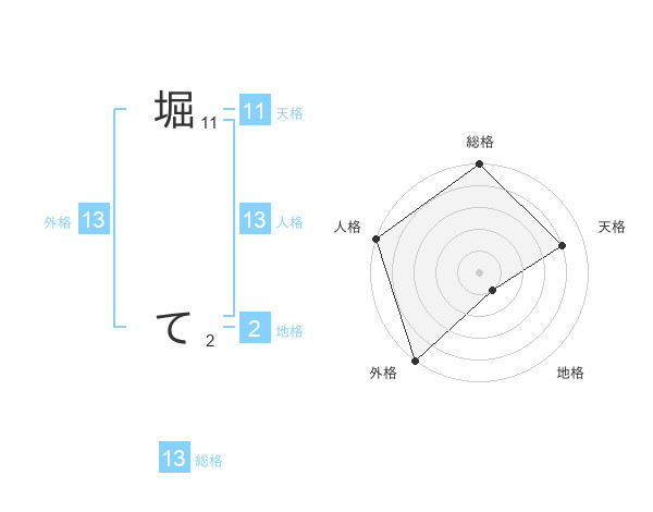 堀 てさんの外格は13画の5点