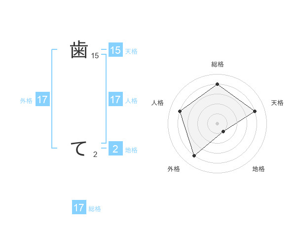 歯 てさんの人格は17画の4点