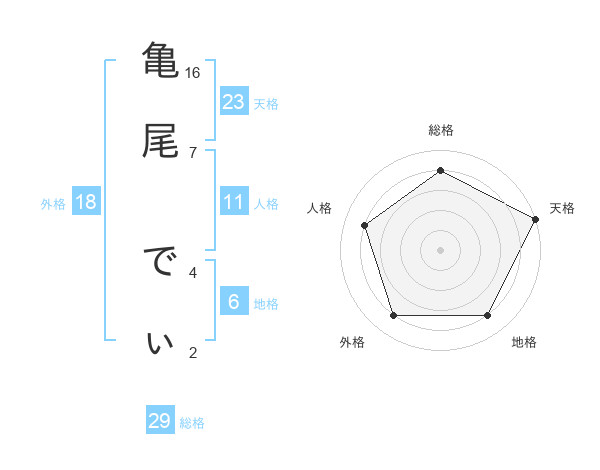 亀尾 でぃさんの天格は23画の5点!