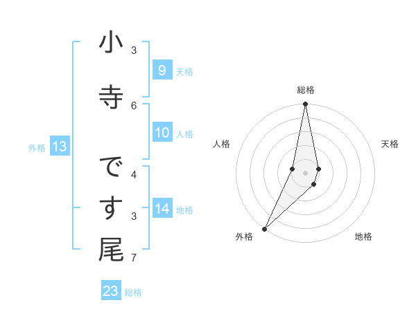 小寺 です尾さんの総格は23画の5点!