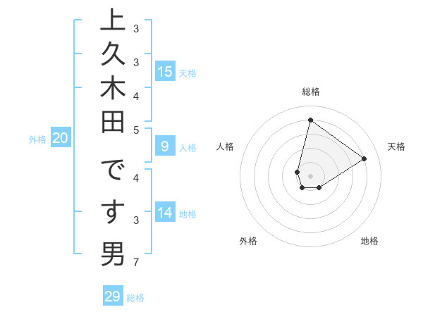 上久木田 です男さんを姓名の画数から五運を鑑定