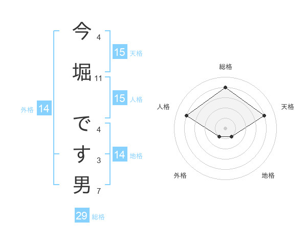 今堀 です男さんの総格は29画の4点!