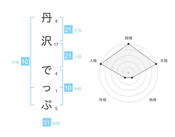 丹沢 でっぷさんを姓名の画数から五運を鑑定