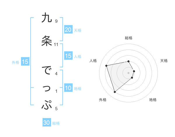 九条 でっぷさんを姓名の画数から五運を鑑定