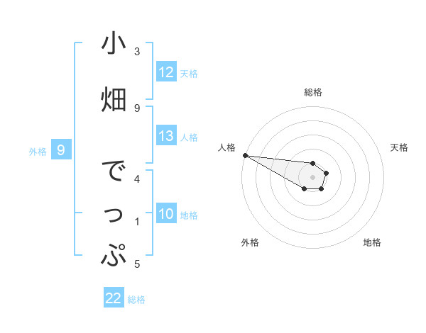 小畑 でっぷさんを姓名の画数から五運を鑑定