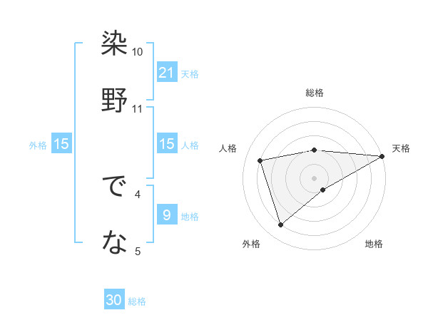染野 でなさんの総格は30画の2点!