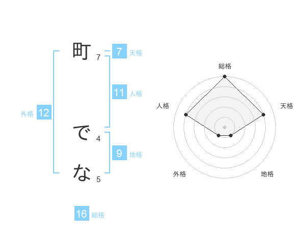 町 でなさんの総格は16画の5点!
