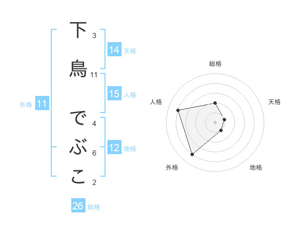 下鳥 でぶこさんを姓名の画数から五運を鑑定