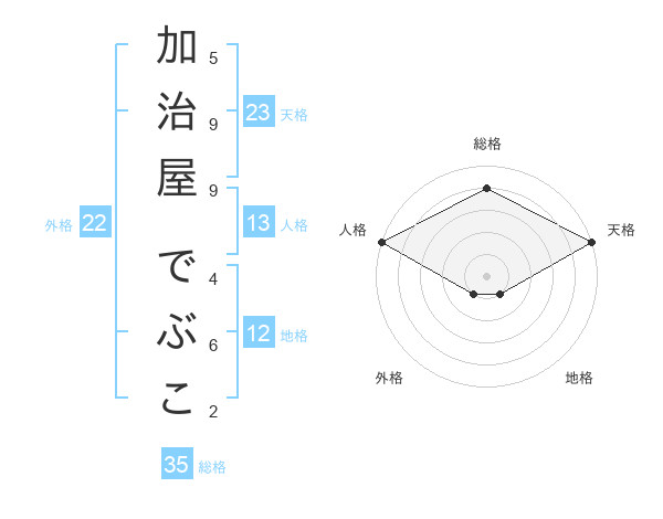 加治屋 でぶこさんの天格は23画の5点