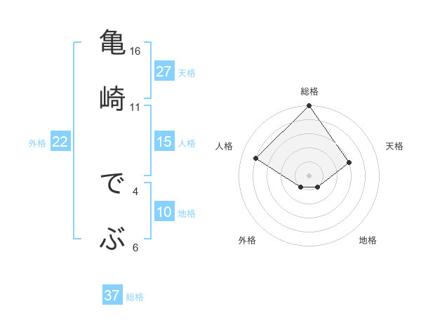 亀崎 でぶさんの総格は37画の5点!