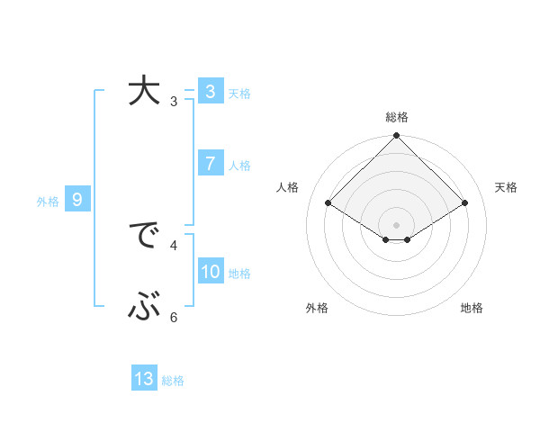 大 でぶさんの総格は13画の5点!