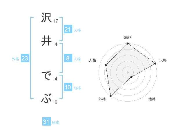 沢井 でぶさんを姓名の画数から五運を鑑定