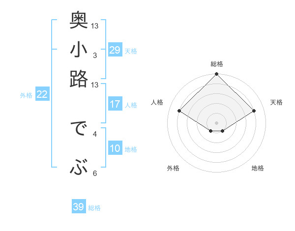 奥小路 でぶさんの総格は39画の5点!