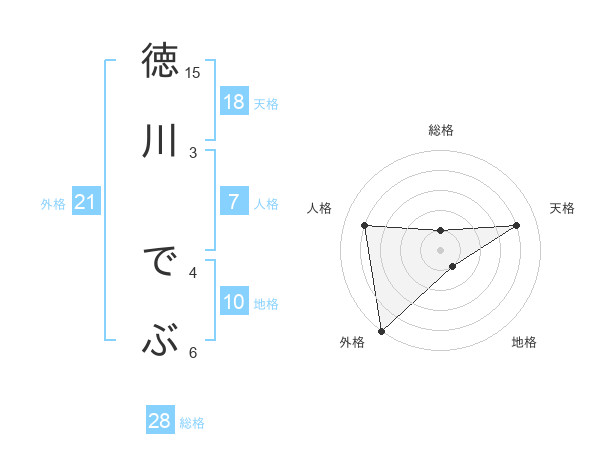 徳川 でぶさんを姓名の画数から五運を鑑定