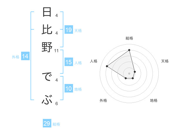 日比野 でぶさんの総格は29画の4点!