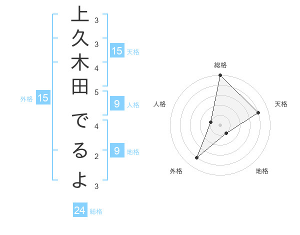 上久木田 でるよさんを姓名の画数から五運を鑑定