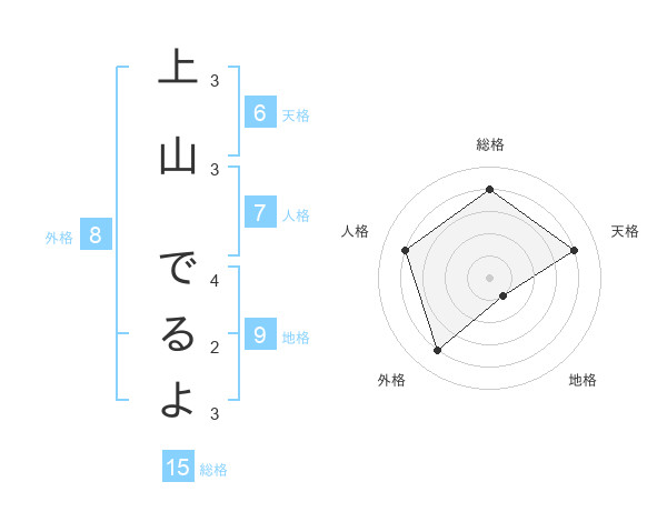 上山 でるよさんの総格は15画の4点!