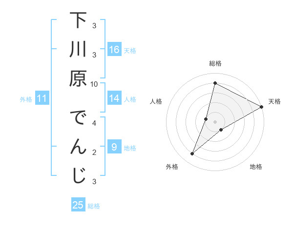 下川原 でんじさんを姓名の画数から五運を鑑定