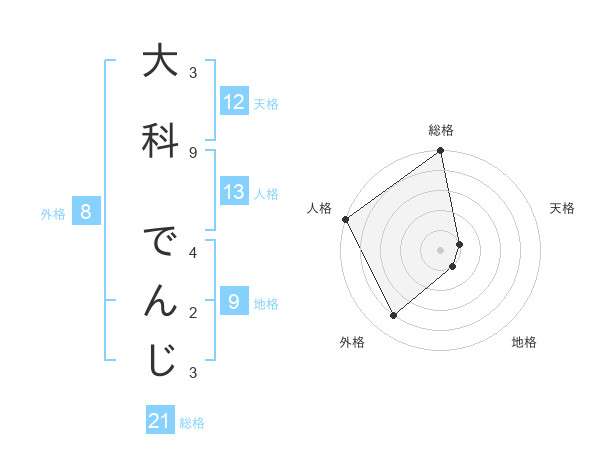 大科 でんじさんの総格は21画の5点!