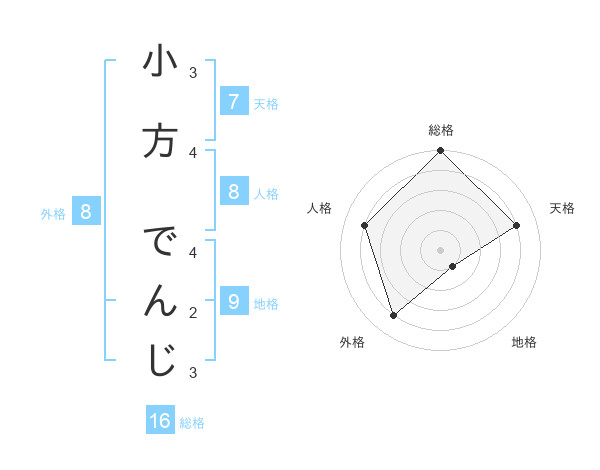小方 でんじさんの総格は16画の5点