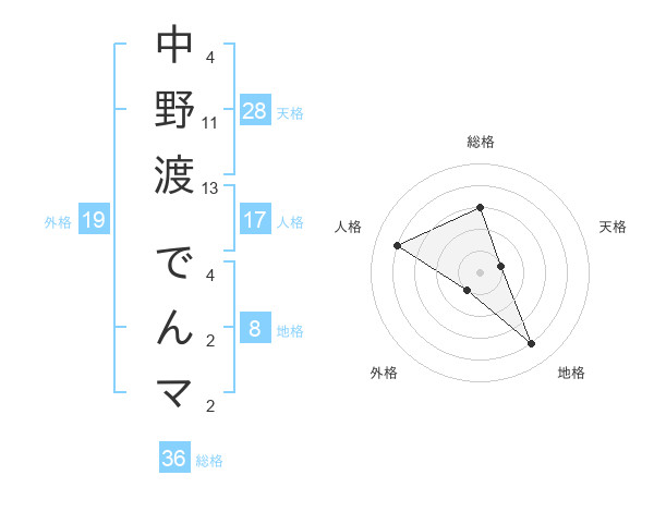 中野渡 でんマさんを姓名の画数から五運を鑑定