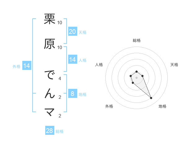 栗原 でんマさんの外格は14画の1点!