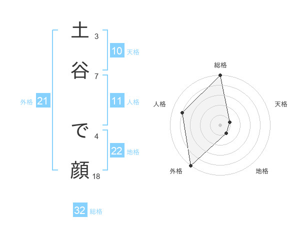 土谷 で顔さんの総格は32画の5点!