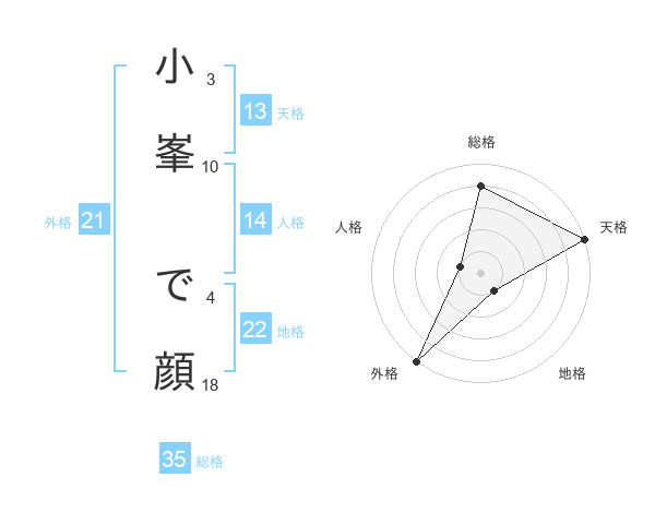 小峯 で顔さんの天格は13画の5点!