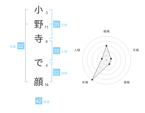 小野寺 で顔さんの総格は42画の3点!