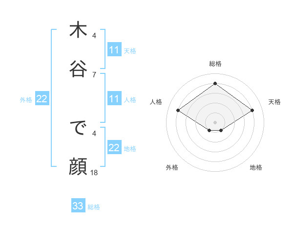 木谷 で顔さんを姓名の画数から五運を鑑定